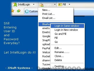 IntelliLogin logs you into Web sites and fills forms faster, easier, and more securely. IntelliLogin memorizes each user ID and password the first time you log into a site and automatically supplies them when you return. IntelliLogin can help you secure your passwords from spyware, trojans, and Phishing. It's easy-to-use, fast, and efficient. Save yourself some time and give IntelliLogin a try!